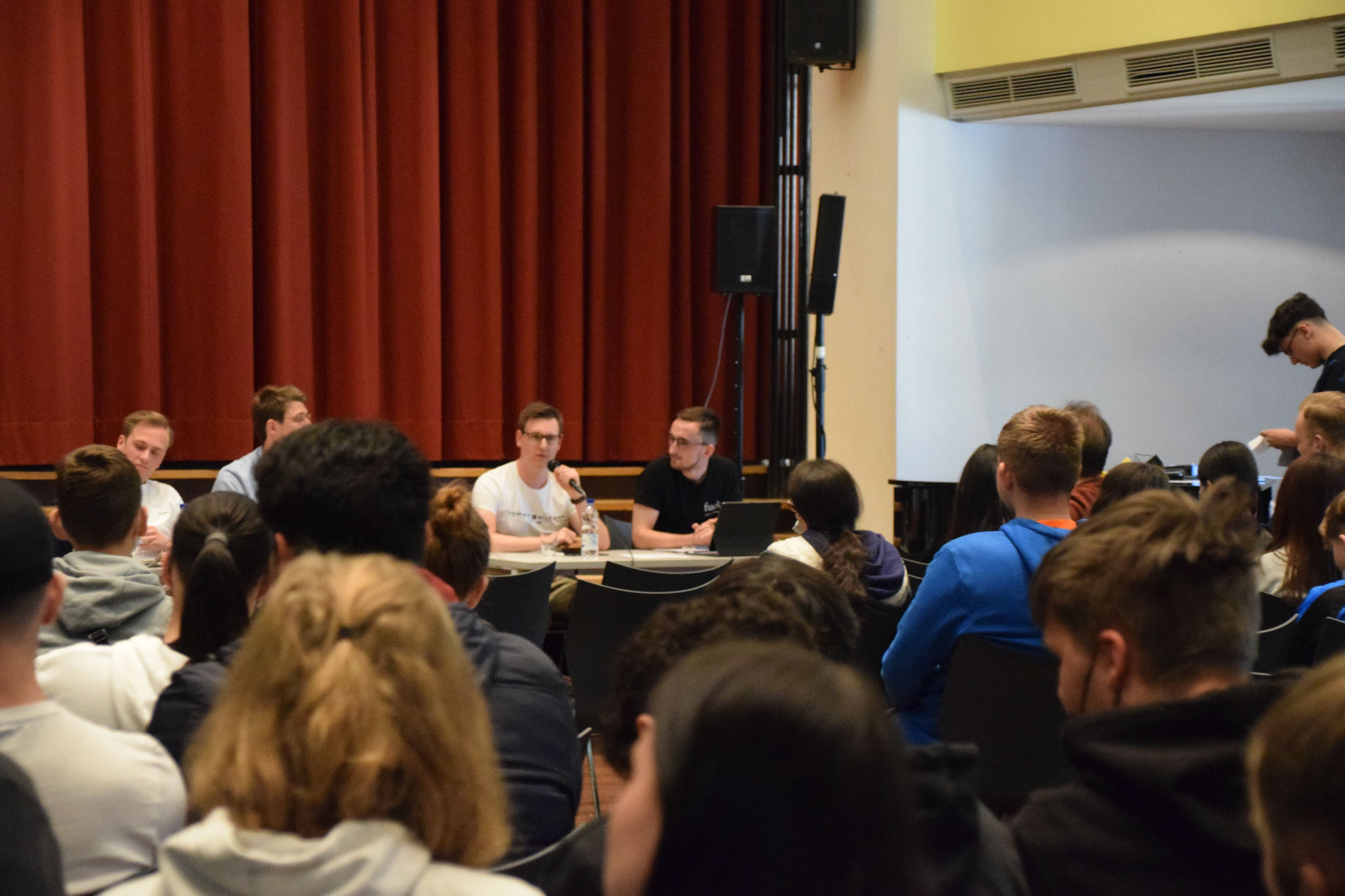Moderiert wurde die Veranstaltung von den beiden SV-Vertretern Eray und Mirko, weitere SV-Schüler:innen und das Team von Herrn Hedtmann (Technik) stellten den reibungslosen Ablauf der Podiumsdiskussion sicher. Die Rückmeldungen im Unterricht waren durchweg positiv: auch auf Instagramm konnten im Nachgang zur Podiumsdiskussion weitere Fragen an die Politiker:innen gestellt werden und die Schüler:innen waren durchweg begeistert, dass ihre persönlichen Fragen beantwortet wurden.